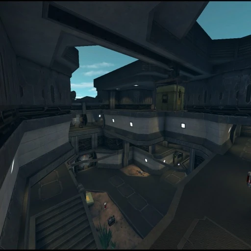 Being a map without a Vortex, one does not need to stack in preparation for damaging sneak hitscan shots; however the only sources of armor is Mega Armor, 50 Armor, and 25 Armor making it important for the out-of-control player not to cede control of the latter pick ups.